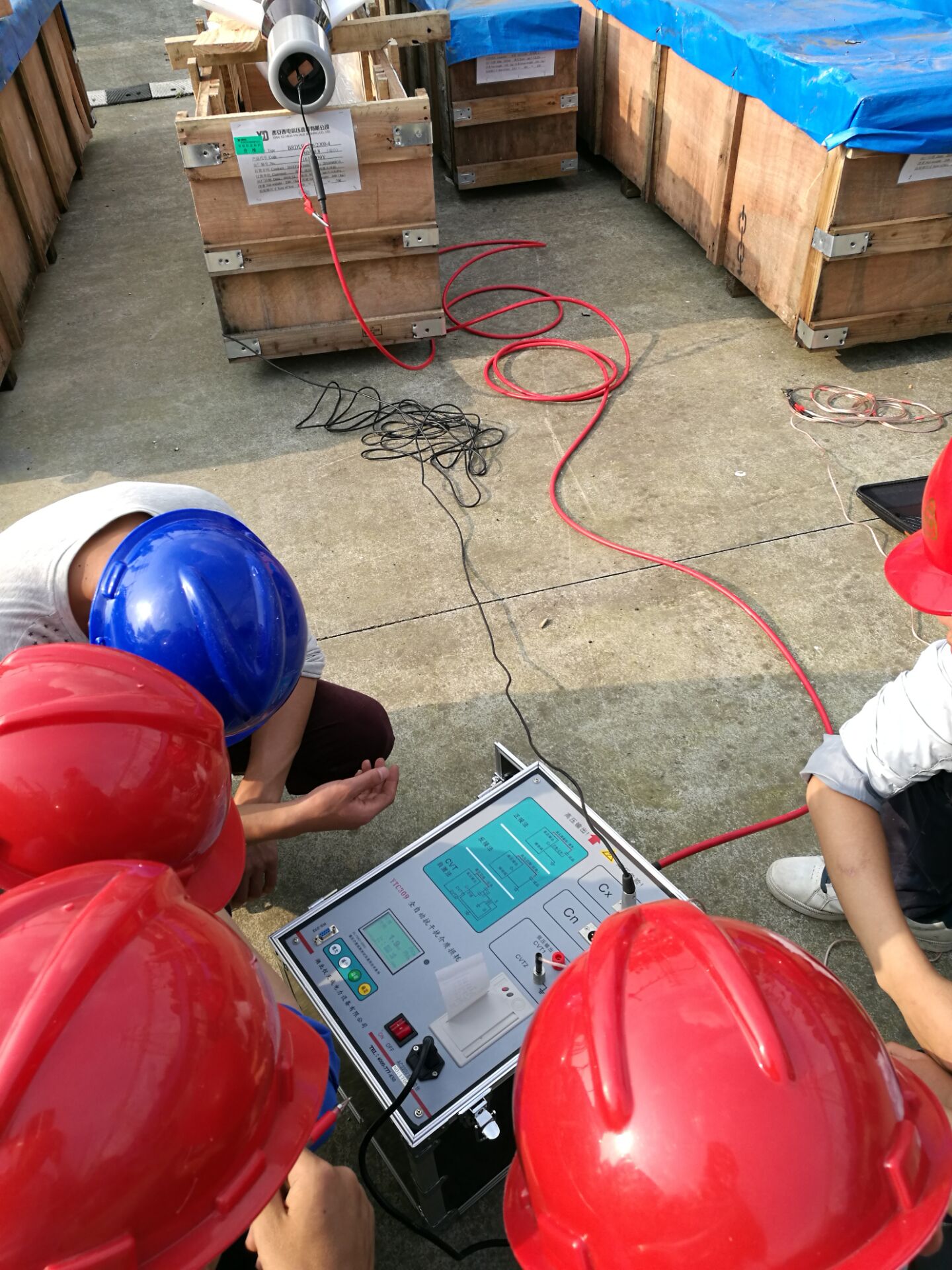 在現(xiàn)場,李工首先對(duì)設(shè)備進(jìn)行了簡單的檢查看看設(shè)備是否有損壞,之后開始了對(duì)設(shè)備的培訓(xùn)。此次培訓(xùn)的設(shè)備和內(nèi)容很多。李工對(duì)各項(xiàng)設(shè)備的使用,接線方法進(jìn)行了實(shí)地操作和詳細(xì)的講解,并對(duì)客戶提出疑問的地方,現(xiàn)場給予細(xì)心,準(zhǔn)確的解答。客戶理解能力比較強(qiáng),在設(shè)備培訓(xùn)過程中有的同事就已經(jīng)基本掌握了設(shè)備的操作,隨后,又與客戶一起到現(xiàn)場對(duì)被試品進(jìn)行了試驗(yàn)。