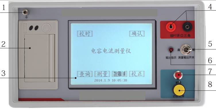 YTC750配電網電容電流測試儀是專業(yè)用來測試配電網電容電流的一種電力測試儀器,采用大屏幕液晶顯示,中文菜單,操作非常簡便,且體積小、重量輕,便于攜帶進行戶外作業(yè),接線簡單,測試速度快,數據準確性高,大大減輕了試驗人員的勞動強度,提高了工作效率。儀天成電力設備有限公司就配電網電容電流測試儀的面板以及測試說明做以下講解。