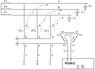 根據上圖的物理模型就可建立相應的數學模型,通過檢測測量信號就可以測量出三相對地電容值3C0,再根據公式I=3ωC0 Uφ(Uφ為被測系統的相電壓)計算出配網系統的電容電流。
