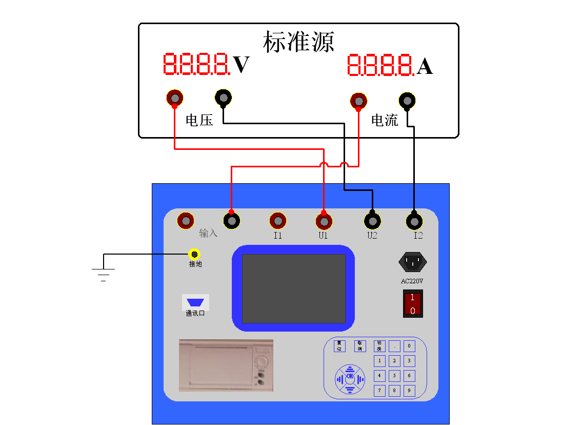 2)接線圖:測試儀與標(biāo)準(zhǔn)源的接線圖如下: