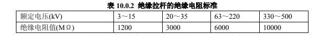 2.絕緣拉桿的絕緣電阻值,在常溫下不應低于表 10.0.2 的規定。